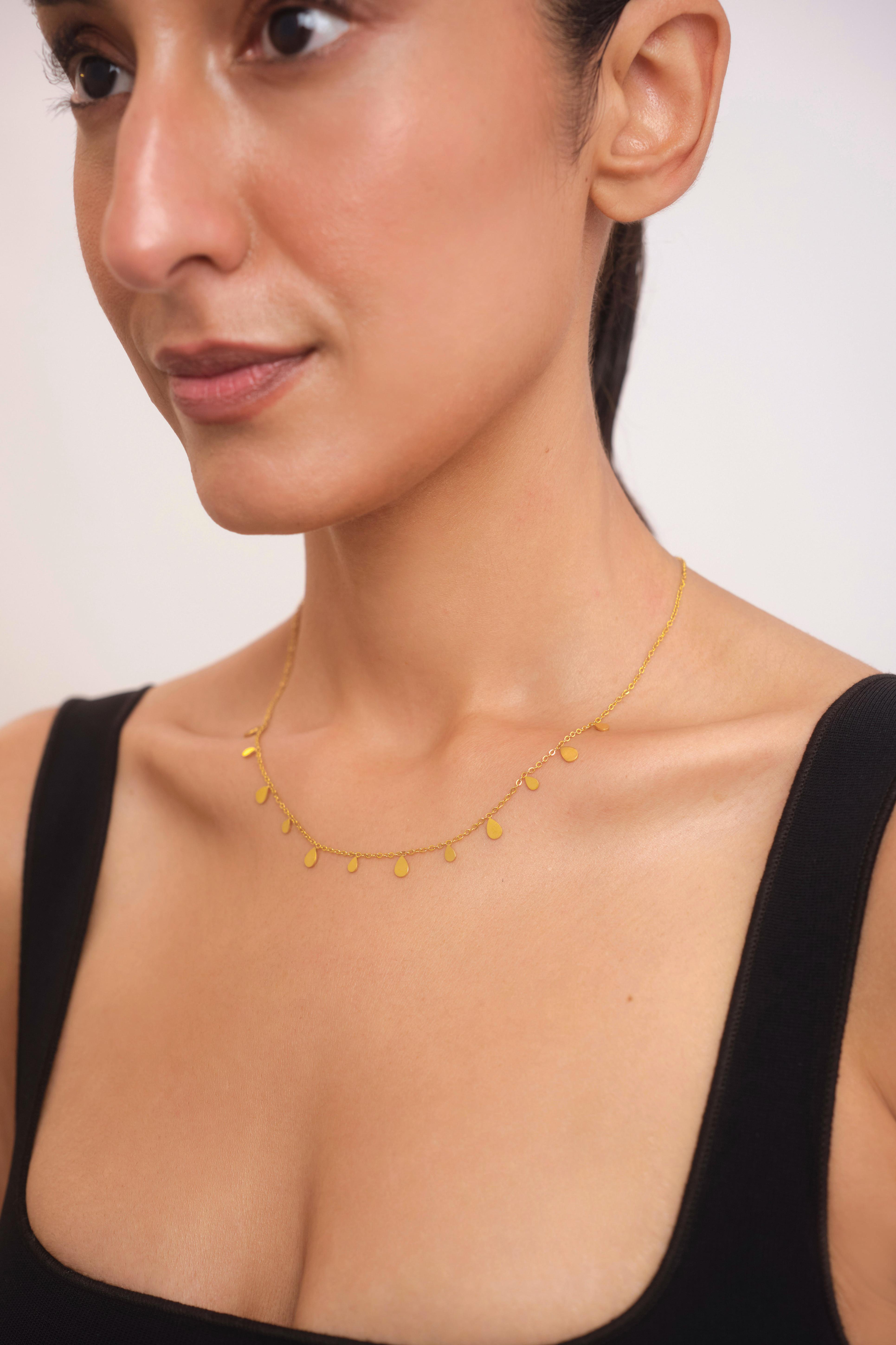The Dewdrop Minimal Necklace is for those who appreciate the beauty in simplicity. With its delicate design that mimics the soft gleam of morning dew, this necklace is a subtle statement of elegance. It’s the kind of piece that effortlessly complements any look, whether you’re dressed down in jeans and a tee or going for something more polished. The Dewdrop Minimal Necklace is your perfect companion for a touch of refined charm.