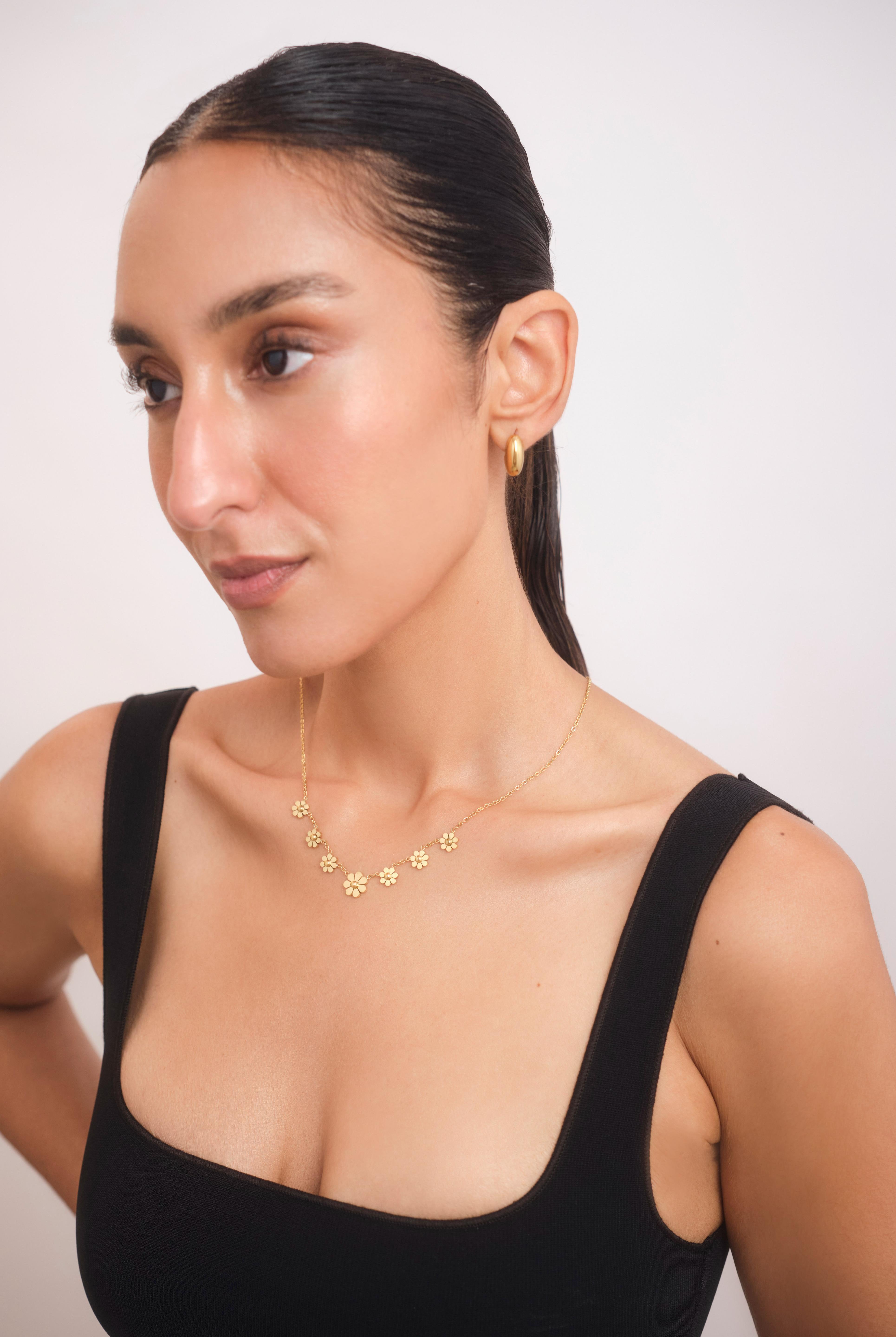 Add a touch of fresh, natural elegance to your look with the Daisy Necklace. Inspired by the timeless beauty of daisies, this piece brings a subtle, playful charm that’s perfect for any occasion. Whether you’re pairing it with a casual outfit or adding a hint of sweetness to a dressy ensemble, the Daisy Necklace is your perfect companion for effortless style that radiates joy and simplicity.